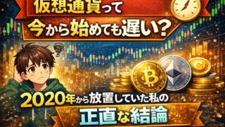仮想通貨 仮想通貨って今から始めても遅い?2020年から放置していた私の正直な結論 「仮想通貨って、もう遅いですよね?」 これは、今から始めようとしている人がほぼ100%思う疑問だと思います。正直、私自身もそうでした。 私は2020年に仮想通貨を始めました。ただし、ガチで運用していたわけではなく、ほぼ... 2026.01.27 仮想通貨